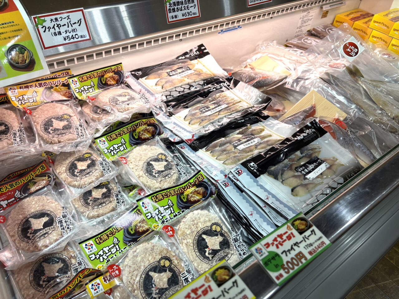 冷蔵、冷凍のお菓子、お肉お魚の加工品、チーズ、なども幅広く販売されています。